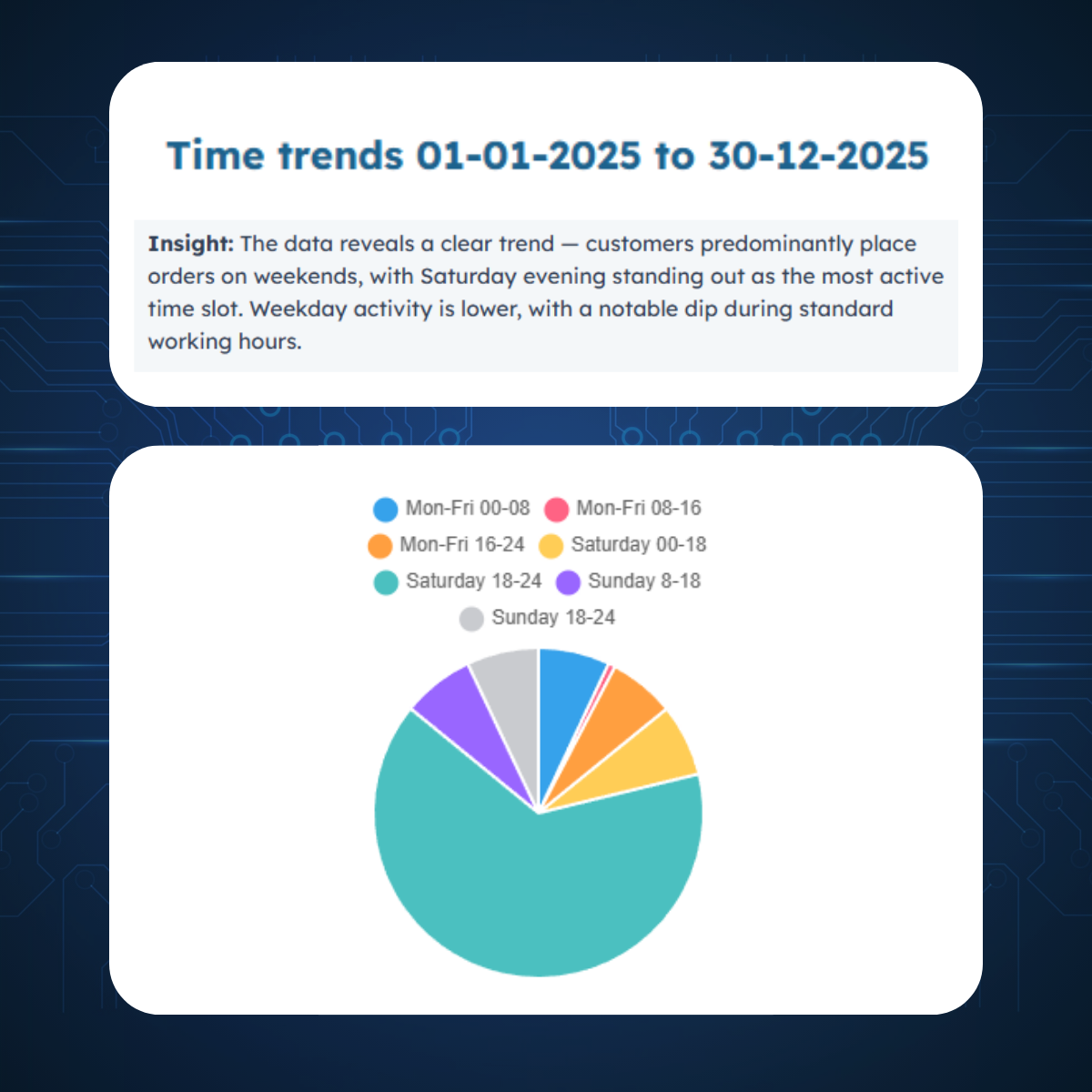 Luonnollisen kielen kyselyt tekevät analytiikasta kaikkien saavutettavaa. Myyntijohtaja voi kysyä: "Miksi Q3 tavoitteet jäivät saavuttamatta Pohjois-Euroopassa?" ja saada välittömästi kattavan analyysin, ilman SQL-kyselyitä tai data-analyytikon apua.